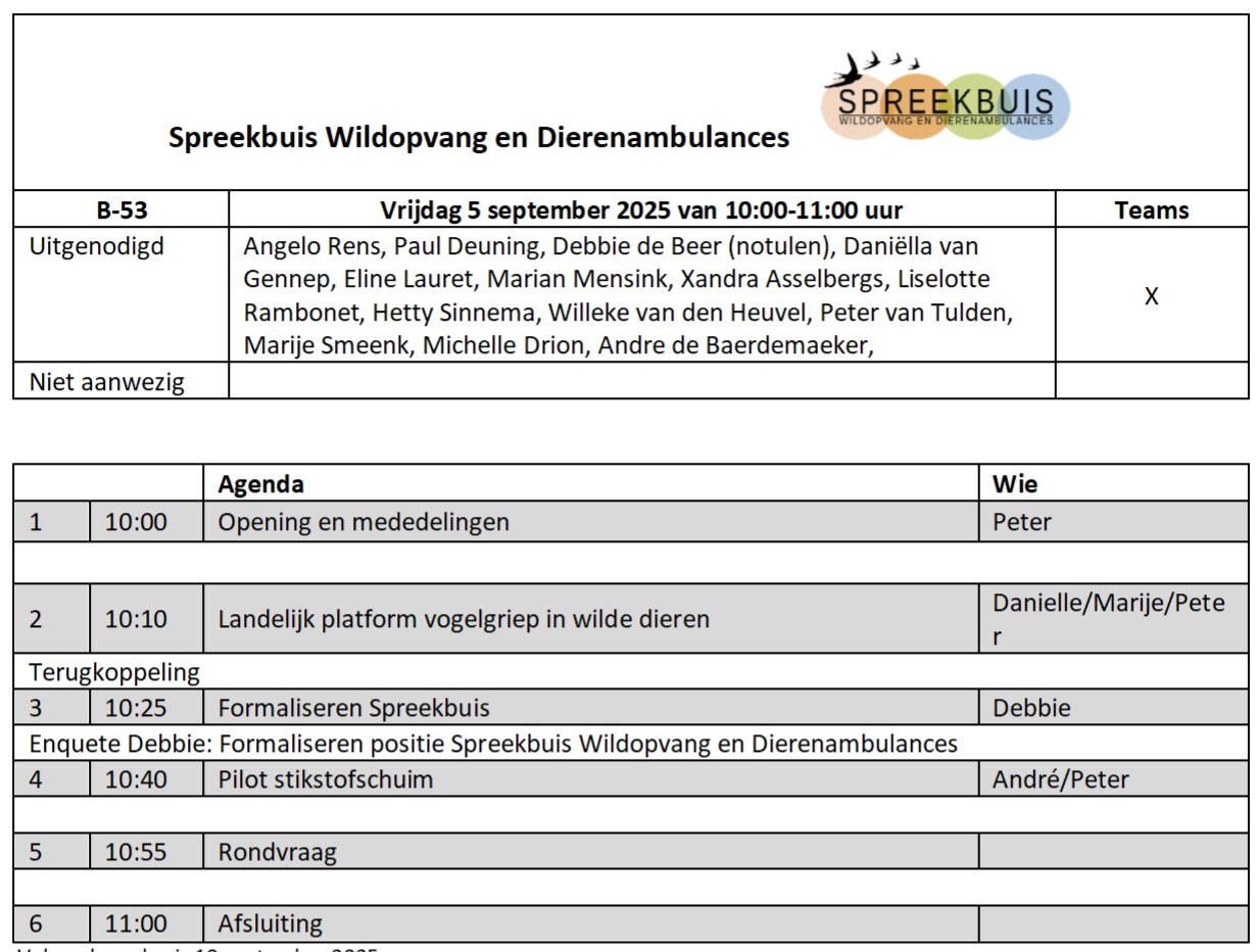 • Nieuwe (overleg) structuur Spreekbuis Wildopvang en Dierenambulances